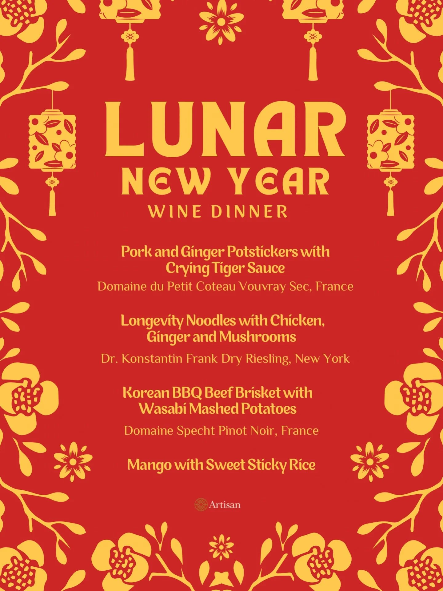 Join us on Wednesday, February 18th at 6:30pm for our Lunar New Year wine dinner! Chef Tuck is preparing four courses that will be paired with three wines presented by our Sommelier. Cost is $50 a person and reservations can be made by calling us at 918-398-7201. We are happy to accommodate any dietary restrictions and provide mocktails for those who don’t want wine. Cheers!