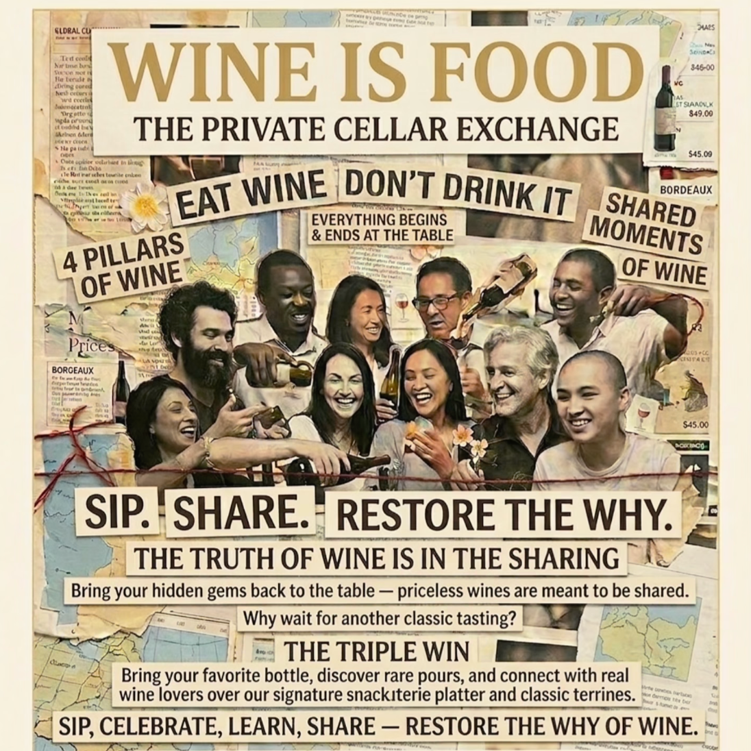 THE TRUTH OF WINE IS IN THE SHARING Bring your hidden gems back to the table, the rarest bottles are the ones opened in good company.